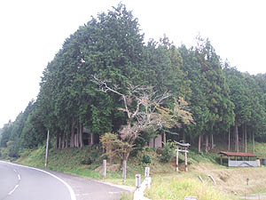 ■探訪記 府道485号線沿ひの山の斜面に鎮座します。左隣りの住宅の方がお祀りされてゐるのでせうか。 社殿の後ろは磐座になつてゐるやうです。 地名の白道路は「はそうじ」と読みます。 H26.11.5記 |