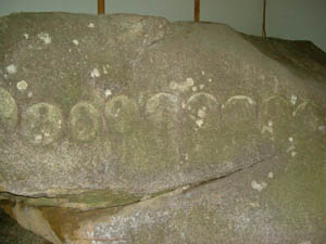 ■探訪記 千代川町北ノ庄の山裾にある浄土宗嶺松寺(古くは天台宗徳光寺)の左側に、八ツ岩大権現の標識と参道登り口があります。石段を嶺松寺の裏山に登つて行くとすぐに鳥居があり、開けた場所に八ツ岩大権現の御本尊の鎮座する社殿があります。御本尊(御神体)は巨岩に彫られた二十一尊磨崖仏で、古くから祀られてゐたものですが、磨崖仏と知られるやうになつたのは昭和三十五年のことであるさうです。 H16.9.14記 |