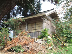 ■探訪記 長谷運動公園の近く、萱野から島まで長谷の集落を通る道沿ひに鎮座します。 聖真院権現の詳細は不明ですが、竹内さんといふお宅で祀つてをられるさうです。 H21.2.17記 |
