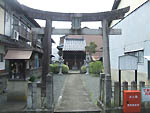 ■探訪記 西町通りの住宅と住宅の間に鎮座します。悪疫流行予防の守護神として崇敬されてきたやうです。屋根の上に鯱が上がつてゐますが、これは鯱が水を呼ぶといふ火伏せの意味を持つてゐます。愛宕さんも祀られてをり、町の防火を祈念する神社でもあるのでせう。鎮座地は旧城下町の西の外れに当たり、西町通りの南側(駅寄り)の交差点付近にはかつて木戸(西門口)が置かれてゐました。 H25.4.28記 |