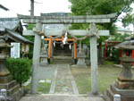 ■探訪記 旧城下町の東竪町の道路に面した狭い境内は整然としてをり、鳥居と近接した本殿、稲荷神社が鎮座します。道路を隔てた本殿の向かひ側に小祠があり、八坂神社の摂社ではないかと思はれます。中には鏡が祀られてゐました。境内奥は東竪町自治会の会所になつてゐます。 神社前は区間に関係なく百円硬貨一枚で利用できる亀岡市コミュニティバスのバス停です。 H16.10.15記 |