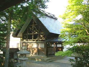 ■探訪記 田園風景の中にぽつんと鎮座する鎮守の杜です。 境内には公民館と消防団があり、隣りにはグラウンドもあつて、地域コミュニティの中心的機能を果たしてゐます。 祈年祭は「ワードンドン」と呼ばれ、古い魂振りの形を保つてゐるものです。 H16.5.18記 |