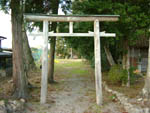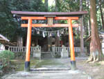 ■探訪記 府道446号豊田富田線沿いの宇津木寺の向かひ、第一組集会所(高屋コミュニティセンター)の横に鎮座します。 二連の鳥居がある階段を上ると、真新しい朱塗りの社殿があります。周囲には柿の木や梅の木が植ゑられてゐて、明るい雰囲気の境内でした。 H18.12.9記 |