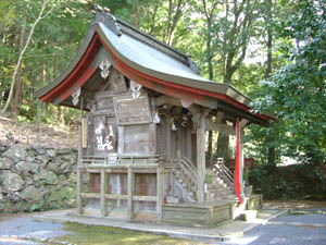 ■探訪記 国道9号線沿ひのガソリンスタンドの横から畦道に入り、JRの線路を越えて(踏切りはないので要注意)、山中に数百メートル入つたところに鎮座します。後方の腹が谷(原ヶ谷)は、天正七年(一五七九)に八木城の内藤国貞が城を明智光秀に攻め落とされて園部町の徳雲寺へ逃げる途中に切腹した場所で、その付近にある巨石が今でも時々唸ると伝へます。徳雲寺には国貞以下重臣の墓があります。 H16.12.19記 |